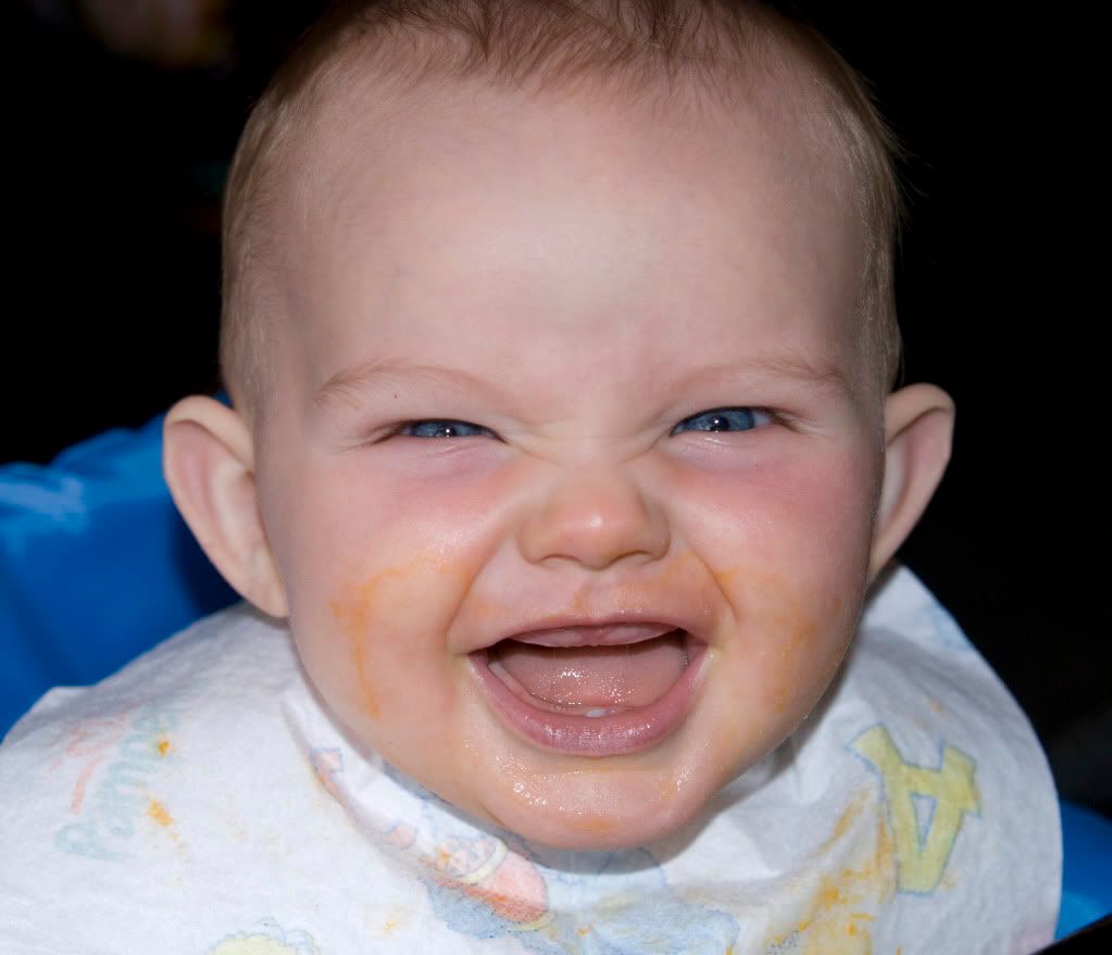 So, I had to show the great teeth.. this was at a restaurant this weekend for an amazing student of mine. But, I have been editing/fixing photos and wanted to show her Godfather she really does have teeth. She is also growing big time. She is nursing a lot.. hence I am beat and off to bed early. See- they are there.. I know the top ones are coming in soon.. What is scary? I have a photo of Zack just like this.. I will find it and compare.. trust me.