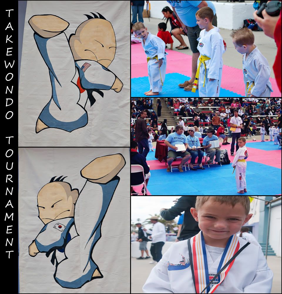 Taekwondo for the last 6 months. They love it. It does take up a great deal of time though, and it becomes $$ with belts, and stripes and such. However, the kids got to participate in their first tournament. They had a great time. I must say though I was exhausted. I was medical for the day, so I got to go in for free and I got a lot of free food. The girls were tired and wanted to participate. But they had their own bit of fun. You have to love a 20 month old who needs a nap. Lots of lessons learned, but more important the boys learned what all their hard work was for.